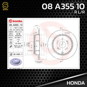 จานเบรค หลัง HONDA CRV G3 G4 07-16 / STD ตรงรุ่น BREMBO 08.A355.10 – จาน ดีส ดรัม เบรค เบรก เบรมโบ้ แท้ 100% ฮอนด้า