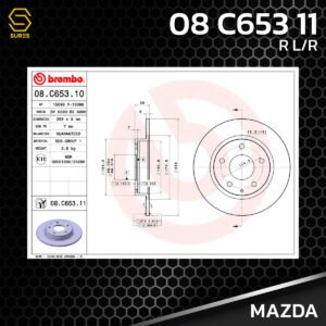 จานเบรค หลัง MAZDA 3 BM SKYACTIV 2.0 / UV ตรงรุ่น BREMBO 08.C653.11 – จาน ดีส ดรัม เบรค เบรก เบรมโบ้ แท้ 100% มาสด้า สกาย