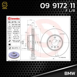 brembo จานเบรค หน้า BMW SERIES 5 E60 E61 523i 525i 520d 530i / SERIES 6 E63 / UV HC ตรงรุ่น 09.9172.11 – จาน ดีส ดรัม เบรค เบรก เบรมโบ้ แท้ 100% บีเอ็ม ซีรี่ส์ 5 6