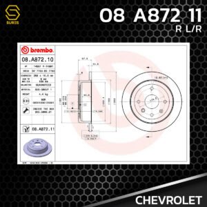brembo จานเบรค หลัง CHEVROLET OPTRA AVEO 1.6 1.8 / UV ตรงรุ่น 08.A872.11 – จาน ดีส ดรัม เบรค เบรก เบรมโบ้ แท้ 100% เชฟโรเลต ออพตร้า อาวีโอ