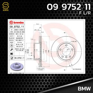 brembo จานเบรค หน้า BMW SERIES 3 E90 320i / SERIES 1 E87 / UV HC ตรงรุ่น 09.9752.11 – จาน ดีส ดรัม เบรค เบรก เบรมโบ้ แท้ 100% บีเอ็ม ซีรี่ส์ 1 3