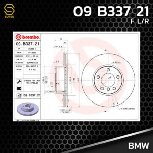 brembo จานเบรค หน้า BMW SERIES 3 E90 F30 320d / X1 E84 / UV HC ตรงรุ่น 09.B337.21 – จาน ดีส ดรัม เบรค เบรก เบรมโบ้ แท้ 100% บีเอ็ม ซีรี่ส์ 3
