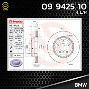 brembo จานเบรค หลัง BMW SERIES 5 E60 E61 523i 525i 520d 530i / STD HC ตรงรุ่น 09.9425.10 – จาน ดีส ดรัม เบรค เบรก เบรมโบ้ แท้ 100% บีเอ็ม